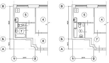 Объединили ванну и туалет или расширили их